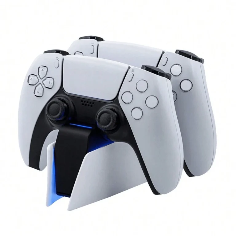 منصة شحن لاجهزة تحكم بلايستيشن5 محطة شحن مزدوجة لتحكم وايرلس Ps5 من جهة التحكم مع إضاءة جوية وتحكم لمسي ,باللونين الأبيض والأ