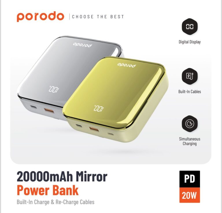 بور بانك مع كيبلات شحن مدمجة باوردو باور بانك بمرآة 20000 مللي أمبير في الساعة للشحن وإعادة الشحن الكابلات