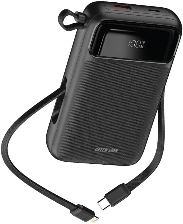 بور بانك 20 الف مع كيبلات مدمجة وشاحن لاسلكي Green Lion Luzern 20K mAh MagSafe – أسود